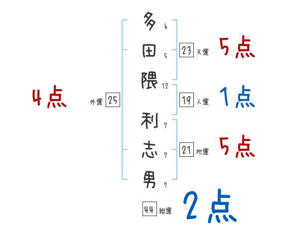 多田隈利志男さんの画数の鑑定結果