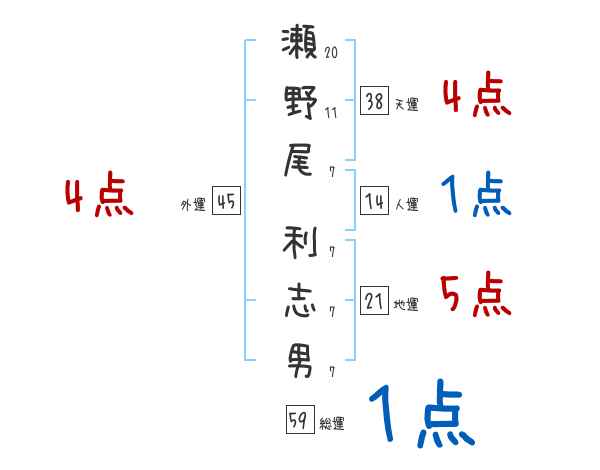 瀬野尾利志男さんの画数の鑑定結果