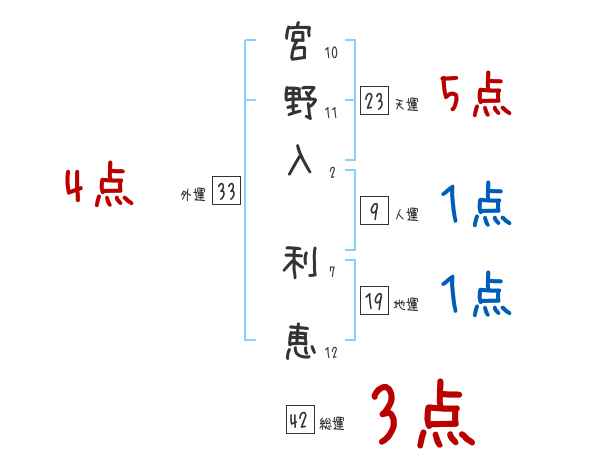 宮野入利恵さんの画数の鑑定結果