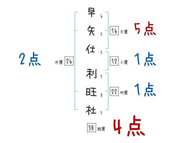 天運![]() | 早矢仕利旺杜さんの天運は16画の5つ星!人望が厚く大きく発展する。逆転成功が見える。 家系が持つ宿命的な運勢を表します。祖先から受け継いだ苗字ですので自分の力が及びません。家柄を象徴します。 |