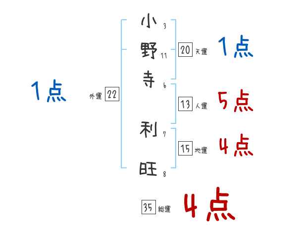 小野寺利旺さんの画数の鑑定結果