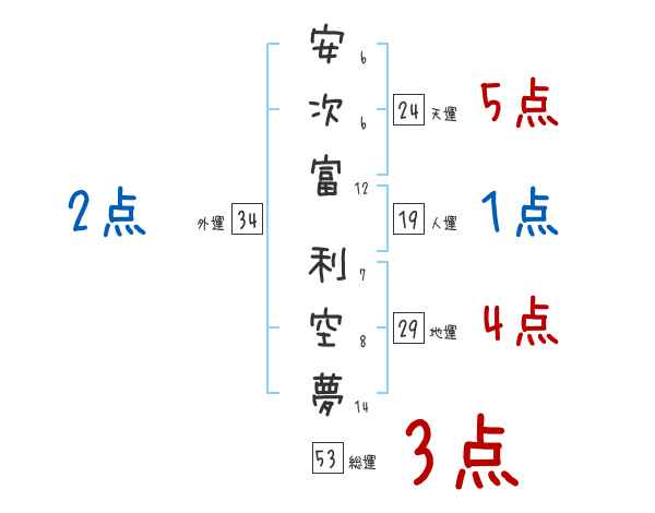 安次富利空夢さんの画数の鑑定結果