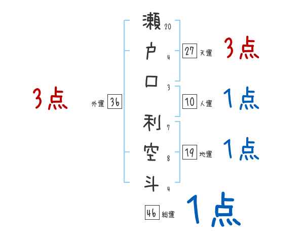 外運![]() | 瀬戸口利空斗さんの外運は36画の3つ星!先見性が豊かです。多少神経質で苦労することも。 生活面を象徴する運勢です。外部から受ける影響力を表し、結婚運、家庭運や職場、環境への順応性を表します。 |