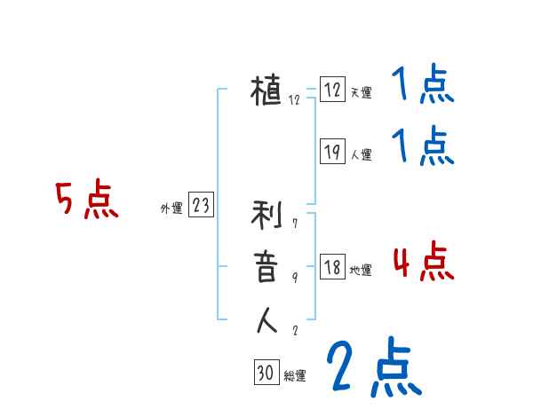 植利音人さんの画数の鑑定結果