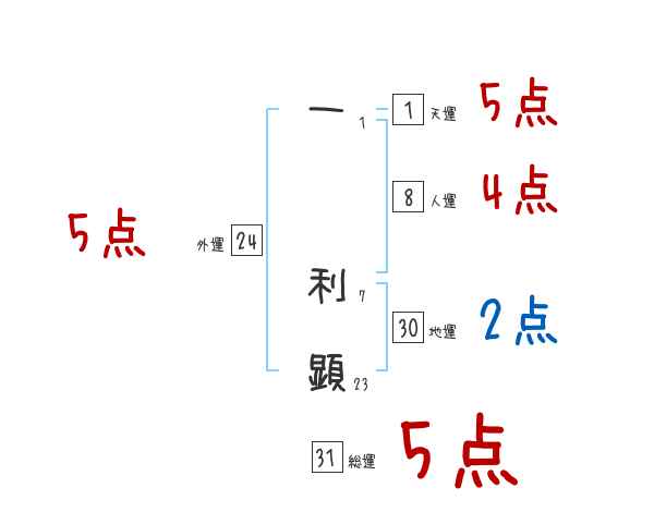 一利顕さんの画数の鑑定結果