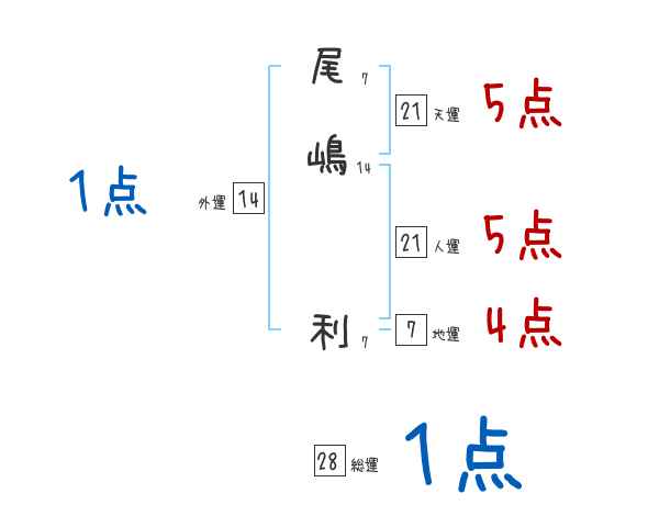 尾嶋利さんの画数の鑑定結果