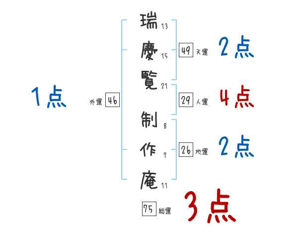 瑞慶覧制作庵さんの画数の鑑定結果