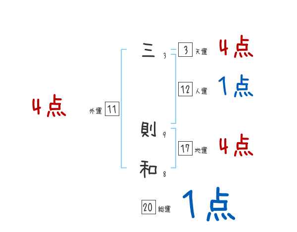 天運![]() | 三則和さんの天運は3画の4つ星!活動的で才能に恵まれ、多くの信頼を得る。希望に満ち成長する。 家系が持つ宿命的な運勢を表します。祖先から受け継いだ苗字ですので自分の力が及びません。家柄を象徴します。 |