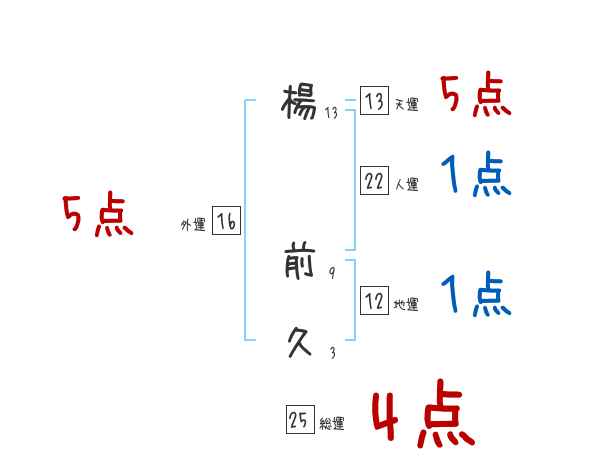 楊前久さんの画数の鑑定結果