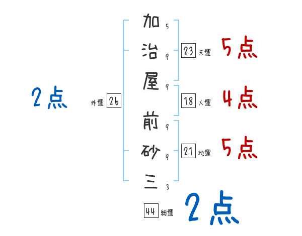 加治屋前砂三さんの画数の鑑定結果