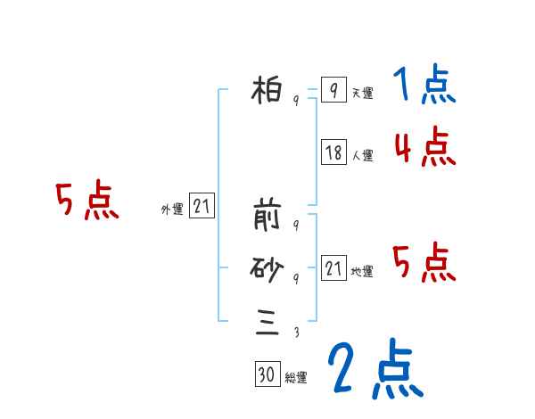 柏前砂三さんの画数の鑑定結果