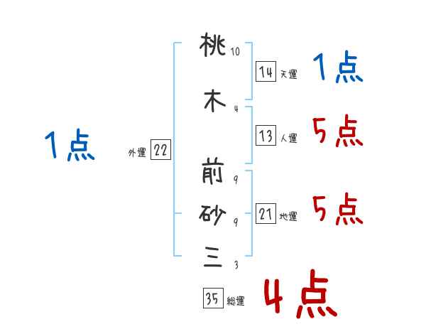 桃木前砂三さんの画数の鑑定結果