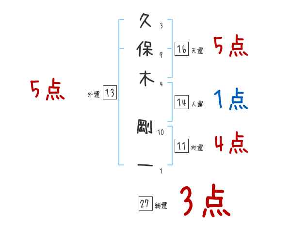 天運![]() | 久保木剛一さんの天運は16画の5つ星!人望が厚く大きく発展する。逆転成功が見える。 家系が持つ宿命的な運勢を表します。祖先から受け継いだ苗字ですので自分の力が及びません。家柄を象徴します。 |