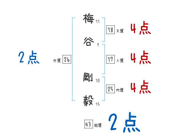 梅谷剛毅さんの画数の鑑定結果