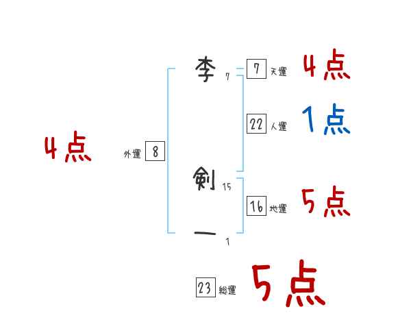 李剣一さんの画数の鑑定結果