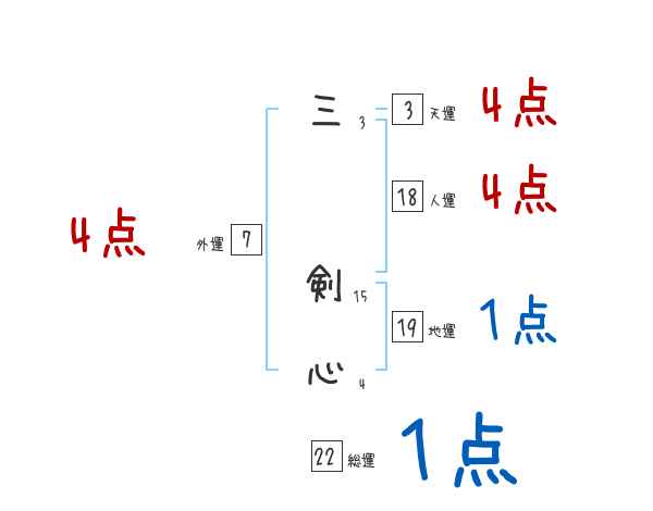 天運![]() | 三剣心さんの天運は3画の4つ星!活動的で才能に恵まれ、多くの信頼を得る。希望に満ち成長する。 家系が持つ宿命的な運勢を表します。祖先から受け継いだ苗字ですので自分の力が及びません。家柄を象徴します。 |