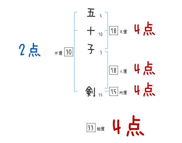 外運![]() | 五十子剣さんの外運は30画の2つ星!浮き沈みの激しさに注意しましょう。 生活面を象徴する運勢です。外部から受ける影響力を表し、結婚運、家庭運や職場、環境への順応性を表します。 |