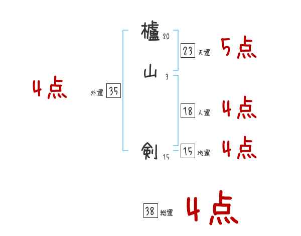 天運![]() | 櫨山剣さんの天運は23画の5つ星!想像力に優れ活力がある。一代で成功し名誉を手に入れる。 家系が持つ宿命的な運勢を表します。祖先から受け継いだ苗字ですので自分の力が及びません。家柄を象徴します。 |