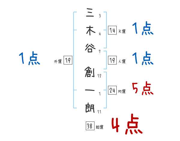 天運![]() | 三木谷創一朗さんの天運は14画の1つ星!人に対して優しいがストレスを溜め込みがち。人間関係のトラブルを避けるよう気をつけましょう。 家系が持つ宿命的な運勢を表します。祖先から受け継いだ苗字ですので自分の力が及びません。家柄を象徴します。 |