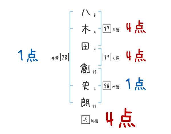 八木田創史朗さんの画数の鑑定結果