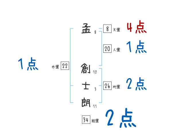 孟創士朗さんの画数の鑑定結果