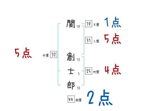 外運![]() | 関創士郎さんの外運は32画の5つ星!柔軟性があり成功する。チャンスが多く金運が良い。 生活面を象徴する運勢です。外部から受ける影響力を表し、結婚運、家庭運や職場、環境への順応性を表します。 |