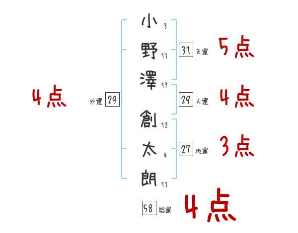 小野澤創太朗さんの画数の鑑定結果