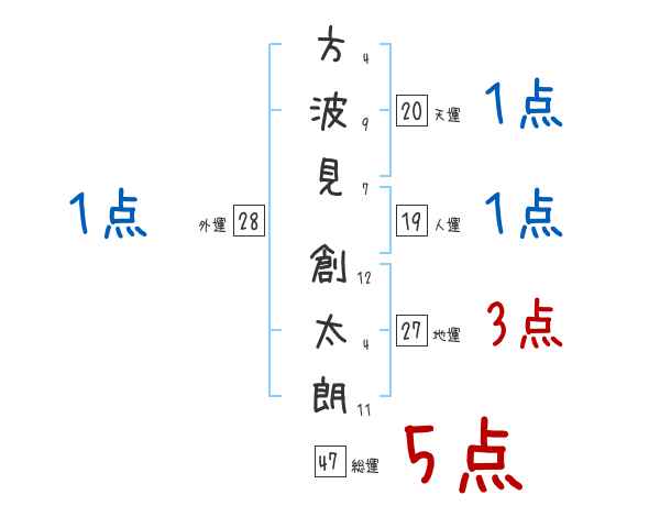 外運![]() | 方波見創太朗さんの外運は28画の1つ星!家庭環境に注意。スポーツで活躍できる能力があるかも。 生活面を象徴する運勢です。外部から受ける影響力を表し、結婚運、家庭運や職場、環境への順応性を表します。 |