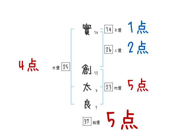 實創太良さんの画数の鑑定結果