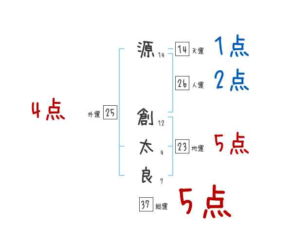 地運![]() | 源創太良さんの地運は23画の5つ星!想像力に優れ活力がある。一代で成功し名誉を手に入れる。 個性を表す基礎的な運勢です。性格形成や対人関係、行動力など家庭環境に影響されます。主に誕生してから20歳くらいまでの若年期の運勢を表します。 |