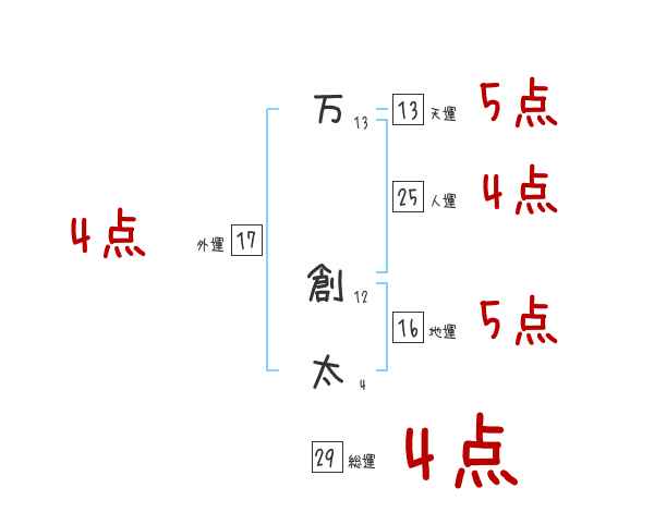 万創太さんの画数の鑑定結果