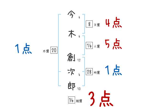人運![]() | 今木創次郎さんの人運は16画の5つ星!人望が厚く大きく発展する。逆転成功が見える。 性格や才能などを表す2番目に重要な運勢です。人間関係や協調性、社会的な成功に影響します。主に20歳から50歳ぐらいまでの中年期の運勢を表します。 |