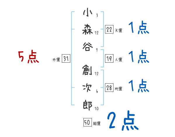 小森谷創次郎さんの画数の鑑定結果