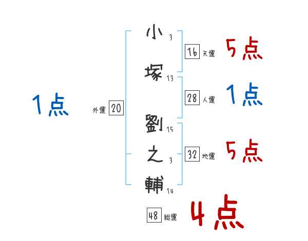外運![]() | 小塚劉之輔さんの外運は20画の1つ星!社交が苦手。人とは違った才能があり波乱万丈な人生かも。 生活面を象徴する運勢です。外部から受ける影響力を表し、結婚運、家庭運や職場、環境への順応性を表します。 |