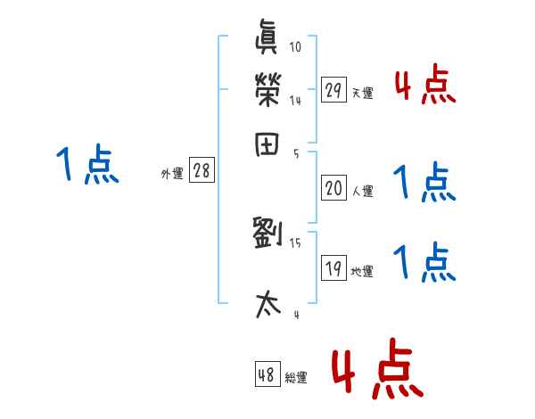 天運![]() | 眞榮田劉太さんの天運は29画の4つ星!完全主義で才能がある。厳格な心の持ち主。 家系が持つ宿命的な運勢を表します。祖先から受け継いだ苗字ですので自分の力が及びません。家柄を象徴します。 |