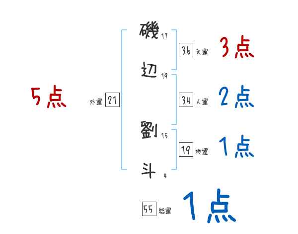 磯辺劉斗さんの画数の鑑定結果