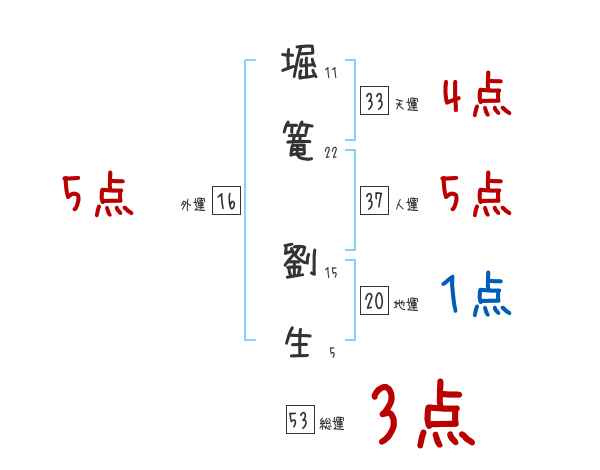 堀篭劉生さんの画数の鑑定結果
