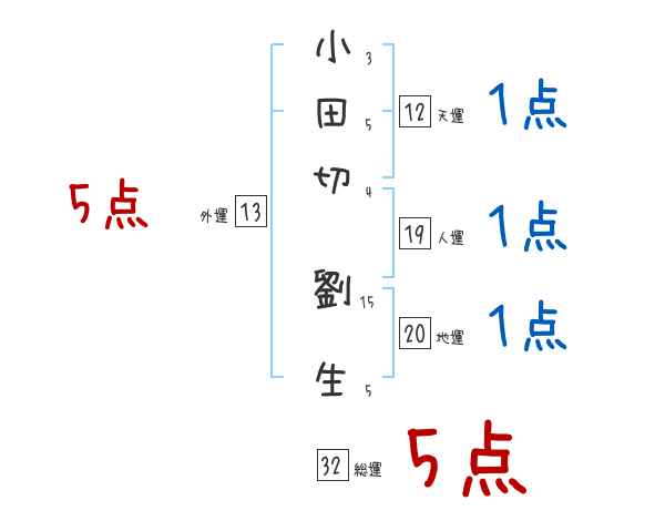 総運![]() | 小田切劉生さんの総運は32画の5つ星!柔軟性があり成功する。チャンスが多く金運が良い。 あなたの人生を表す1番重要な運勢です。生涯を通じて影響する総合運となり、主に50歳以降の晩年期に影響を及ぼします。 |