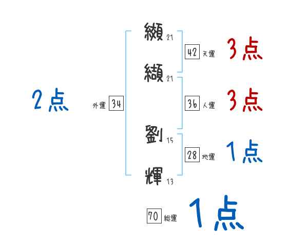纐纈劉輝さんの画数の鑑定結果