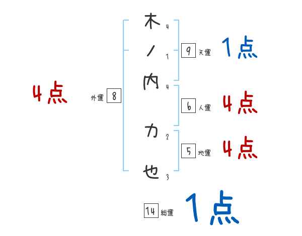 天運![]() | 木ノ内力也さんの天運は9画の1つ星!消極的で才能を発揮することが苦手なことも。周りの意見に耳を傾けましょう。 家系が持つ宿命的な運勢を表します。祖先から受け継いだ苗字ですので自分の力が及びません。家柄を象徴します。 |