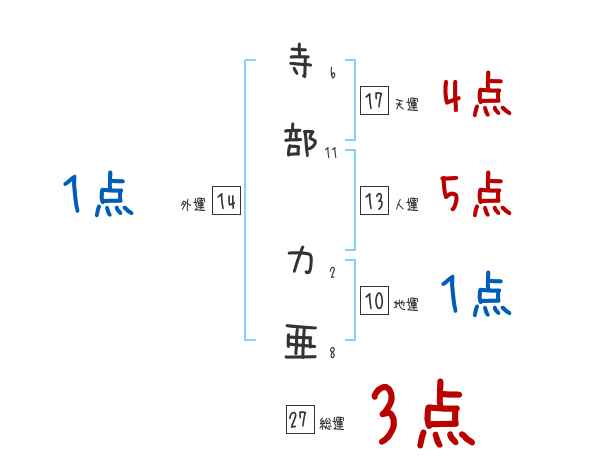 外運![]() | 寺部力亜さんの外運は14画の1つ星!人に対して優しいがストレスを溜め込みがち。人間関係のトラブルを避けるよう気をつけましょう。 生活面を象徴する運勢です。外部から受ける影響力を表し、結婚運、家庭運や職場、環境への順応性を表します。 |