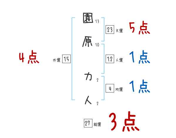 外運![]() | 園原力人さんの外運は15画の4つ星!人徳があり出世する。順調に物事を進め円満な人生。 生活面を象徴する運勢です。外部から受ける影響力を表し、結婚運、家庭運や職場、環境への順応性を表します。 |