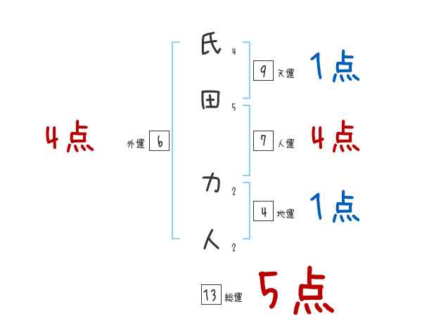 氏田力人さんの画数の鑑定結果