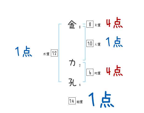 金力孔さんの画数の鑑定結果