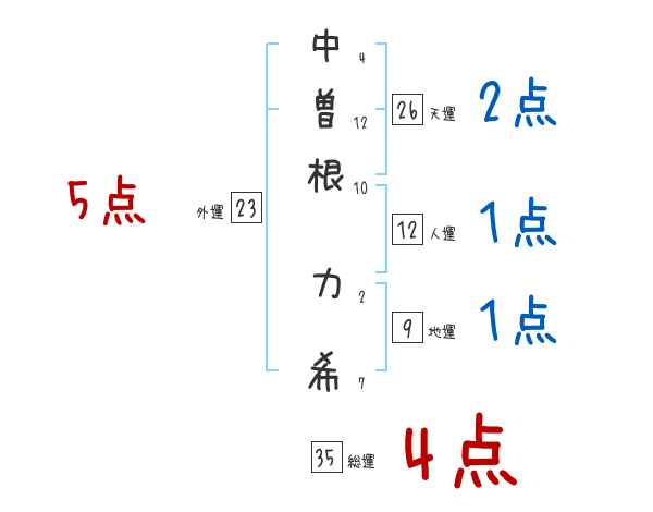 外運![]() | 中曽根力希さんの外運は23画の5つ星!想像力に優れ活力がある。一代で成功し名誉を手に入れる。 生活面を象徴する運勢です。外部から受ける影響力を表し、結婚運、家庭運や職場、環境への順応性を表します。 |