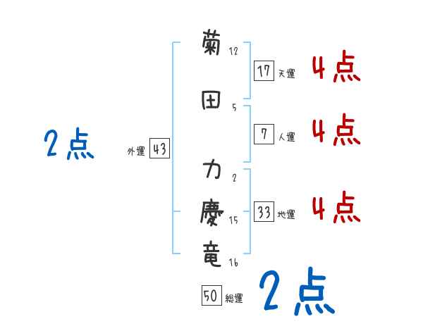 菊田力慶竜さんの画数の鑑定結果