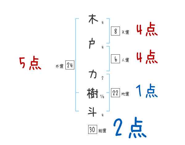 外運![]() | 木戸力樹斗さんの外運は24画の5つ星!家庭運が良く順調な人生。金運にも恵まれる。 生活面を象徴する運勢です。外部から受ける影響力を表し、結婚運、家庭運や職場、環境への順応性を表します。 |