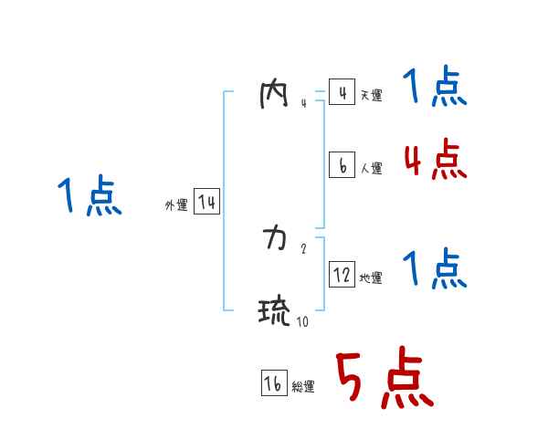 内力琉さんの外運は14画の1つ星
