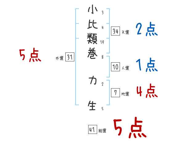 地運![]() | 小比類巻力生さんの地運は7画の4つ星!強い意志や信念を持ち独立心が強い。自立する。 個性を表す基礎的な運勢です。性格形成や対人関係、行動力など家庭環境に影響されます。主に誕生してから20歳くらいまでの若年期の運勢を表します。 |