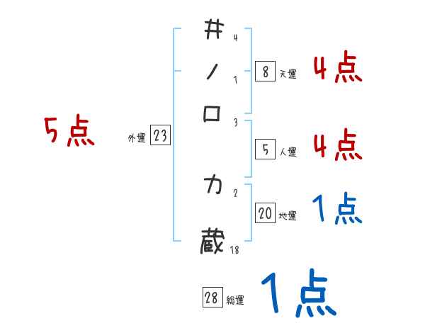 外運![]() | 井ノ口力蔵さんの外運は23画の5つ星!想像力に優れ活力がある。一代で成功し名誉を手に入れる。 生活面を象徴する運勢です。外部から受ける影響力を表し、結婚運、家庭運や職場、環境への順応性を表します。 |
